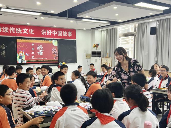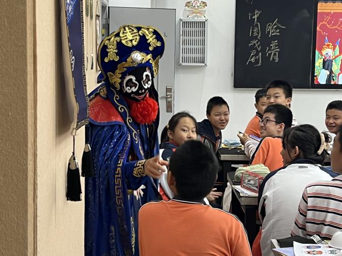 第二节课由南京市第十三中学锁金分校的侯德怡老师执教,课题为《中国戏剧脸谱》。课堂上,她以现场川剧变脸为导入,学生大呼神奇,激发强烈兴趣。接着,她介绍了脸谱的起源,引导学生观察并总结脸谱的谱式及不同色彩的含义,探索脸谱“寓褒贬、别善恶”的深刻内涵。通过了解脸谱在国际舞台上的应用,体验脸谱创作的过程,进一步坚定了文化自信。