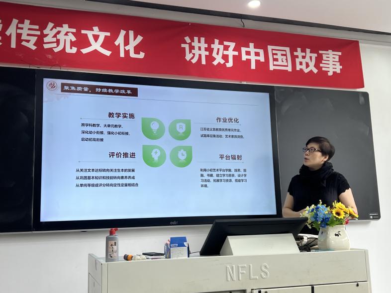 活动尾声,南京外国语学校艺术教研组组长曹启海老师进行了讲座《注重情境教学,激发学习热情》,结合讲座的内容,曹老师充分肯定了两位青年教师注重课堂伊始的教学情境创设以及能够聚焦核心素养的课堂教学过程,对两位青年教师的专业发展寄予厚望。最后,曹老师对南京外国语学校教师郝世奇表达了期许,郝老师即将代表南京市参加江苏省中学美术教学基本功大赛,预祝她在大赛中有精彩的表现。