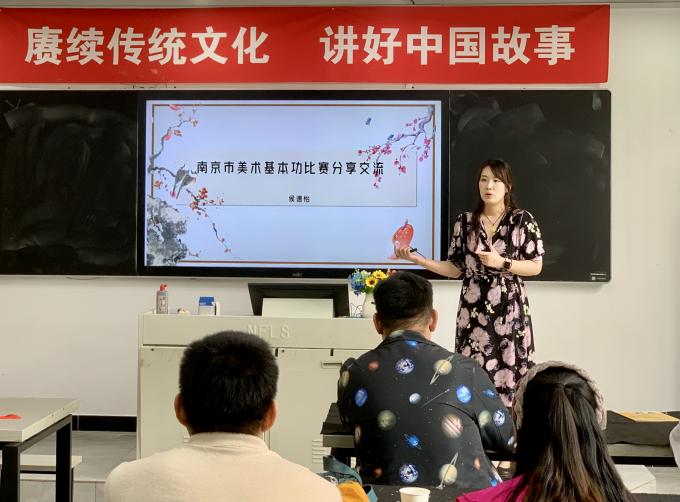 接着,王茜怡老师和侯德怡老师就上学期参加南京市中学美术教学基本功大赛的经历做了交流分享,从比赛的几个项目进行了具体分析。她们表示,将以基本功大赛为契机,不断严格要求自己,为培养全面发展的学生,提高自身的艺术修养做出不懈努力。