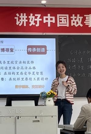 南京外国语学校的郝世奇老师进行了题为《在传承中创造——中国工艺美术》的说课,说课分三课时:1.技臻于美2.南博寻宝3.传承创造,通过三课时分别探究艺术语言、探寻文物特征、探索发展之旅,启发同学们将中国传统工艺进行创造性转化、创新性发展,实现对中国传统工艺守正创新的理解。