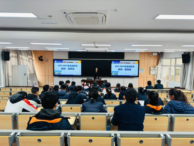 2023年12月6日中午,2023-2024学年南京外国语学校学生辅导员表彰暨培训大会在E三楼阶梯教室举行。