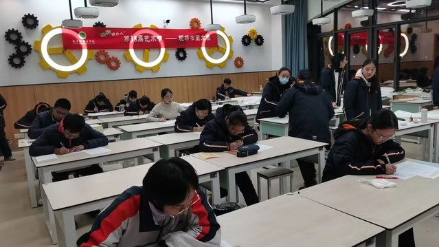 12月13日,我校“出彩南外人”现场书法大赛于艺术中心美术教室进行。本次比赛分为硬笔、软笔两个类别,软笔书法参赛者可自选古诗文,硬笔书法参赛者则是现场统一命题。初中部和高中部百余位同学参加了比赛,他们以书法的形式致敬书写南外故事,传承华夏文化。