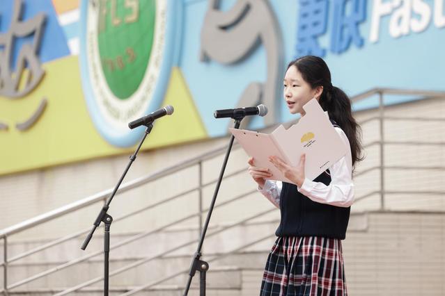 感谢高渃一同学精彩的发言。自尊、自律、自爱三要素紧密融合,支撑着我们不断前行,成就更完美的自我。不积跬步,无以至千里;不积小流,无以成江海。每一次执着的自我修炼,每一回精彩的形象展示,都是我们走向成熟、接近优秀的坚实步伐。让我们携手共进,互相激励,以“内炼修养,外塑形象”为目标,不断完善自我,展现南外学子的风采!