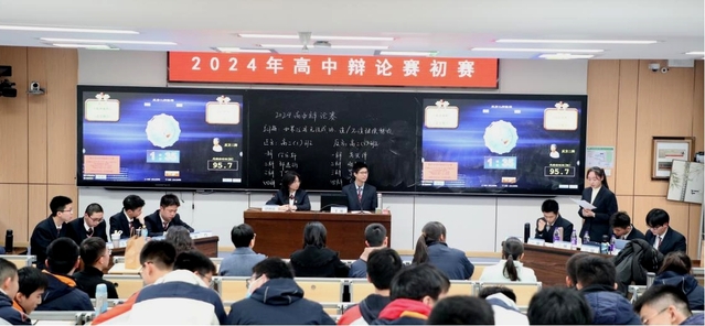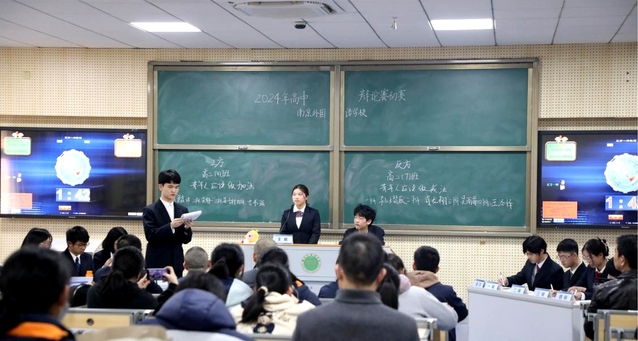 2024年3月11日,南京外国语学校的阶梯教室里“热闹非凡”,各班同学唇枪舌剑,你来我往,金句频现,赢得台下阵阵掌声,高一、高二年级“五四”辩论赛火热进行中。