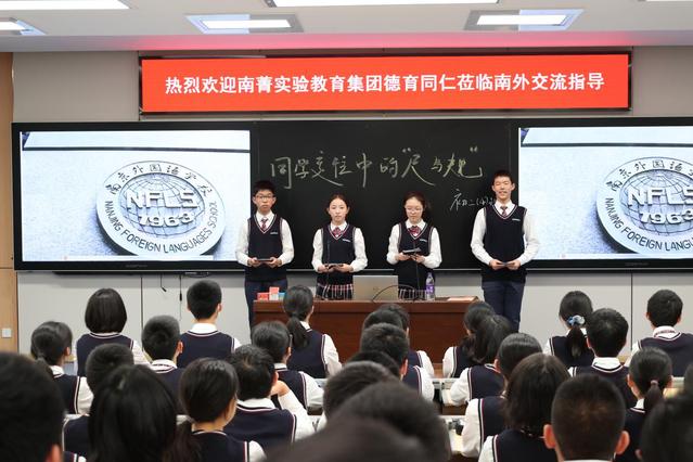 在E二楼阶梯教室,校纪委书记吕燕对所有来访老师表示热烈欢迎并介绍了南外的概况和德育工作现状。