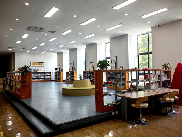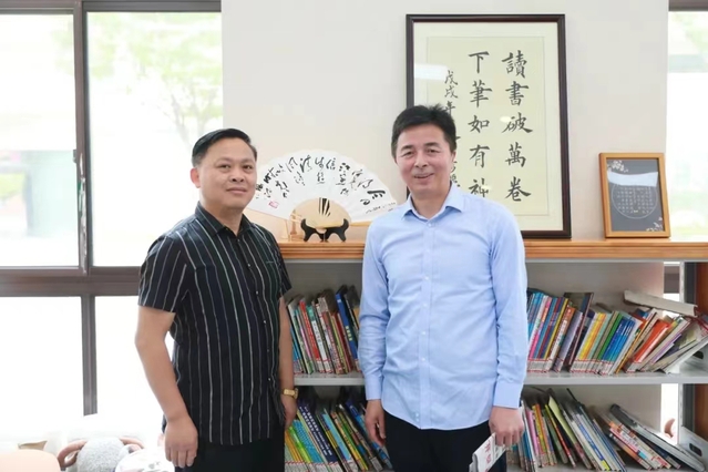 我校退教协理事长夏保年老师赠送给青奥村小学一把折扇,马校长等校领导将扇子陈列在于学校图书馆: