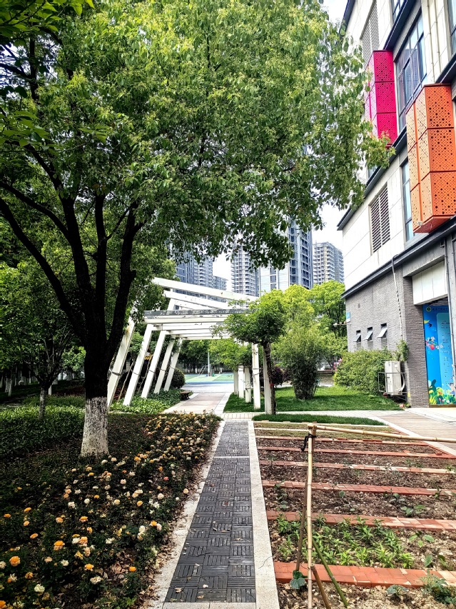 敬爱的“老朋友们”不时驻足观看,不时询问着关于校园建设的点点滴滴,对每一处新景都流露出浓厚的兴趣。有的老教师还拿出了专业的摄像设备,记录校园中的美好:花儿如繁星般点缀在校园的每一个角落,每一寸土地都仿佛被赋予了新的生命;孔雀们优雅地漫步在校园中,温顺的羊儿们偶尔低头觅食,偶尔抬头望向远方,为青奥园增添了一抹灵动之美;绿油油的青菜地,更是展现出蓬勃的生机与活力;善行园内的中式园林景致与悠然自得的鸭子相映成趣,共同勾勒出一幅和谐自然的美丽画卷,令人陶醉其中……