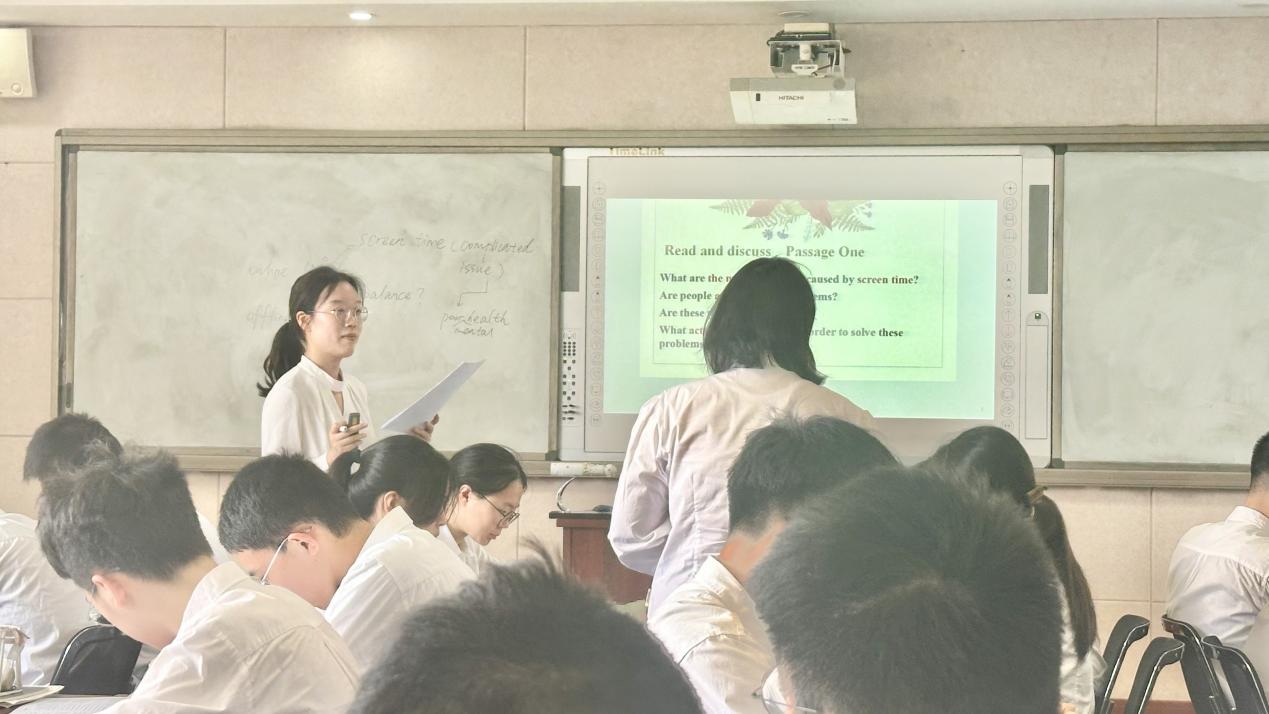 在英语学科展示活动的第一环节,镇江一中的司马凌云老师和我校顾伟杰老师先后进行了以“高中英语科技说明文阅读教学中逻辑思维的培养”为主题的公开课展示。司马老师的展示课对“英语跨学科融合教学”进行了一次大胆尝试。她选取了NASA网页上关于火箭技术的文本,借助最近我国“嫦娥六号”火箭发射视频引出教学内容,层层深入,引导学生对火箭发射背后的牛顿三大定律进行了深度学习。顾伟杰老师紧密结合新高考与新课标的要求,尝试了一次“英语+心理学”的报刊群文阅读教学。顾老师基于高二学生在科技说明文阅读方面的学情,从《21世纪英文报》中精心挑选有关智能设备使用和学生心理健康的文本。她搭建了梯度鲜明且层级突出的阅读任务框架,并将高考“七选五”题型巧妙融入到阅读分析任务中,关注到了课内知识与课外实践的呼应与衔接,处处凸显英语学科的育人功能。