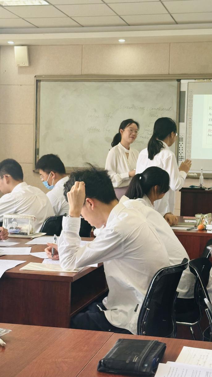 出:两位老师的课都是开放、生动、充满探究精神的课,都体现了科学精神的引领、英语学科核心素养的落实。司马老师的课很好地展示了如何在高中英语科技说明文阅读中培养学生的科学精神,她结合教材巧妙地融入思维品质的培养,同时设置了项目化作业,让学生共同制定方案并分工协作。王老师也对我校顾老师的课做出了高度评价:顾老师的课特别注重学生高阶思维能力的培养,问题设计层次分明,既涵盖了分析与推断类的问题,同时也设计了归纳与概括、评价与创造类的问题。顾老师能够立足文本,引导学生表达个人情感,探究语篇的现实意义,建立了语篇与学生个人生活和世界的联系,极具现实意义。