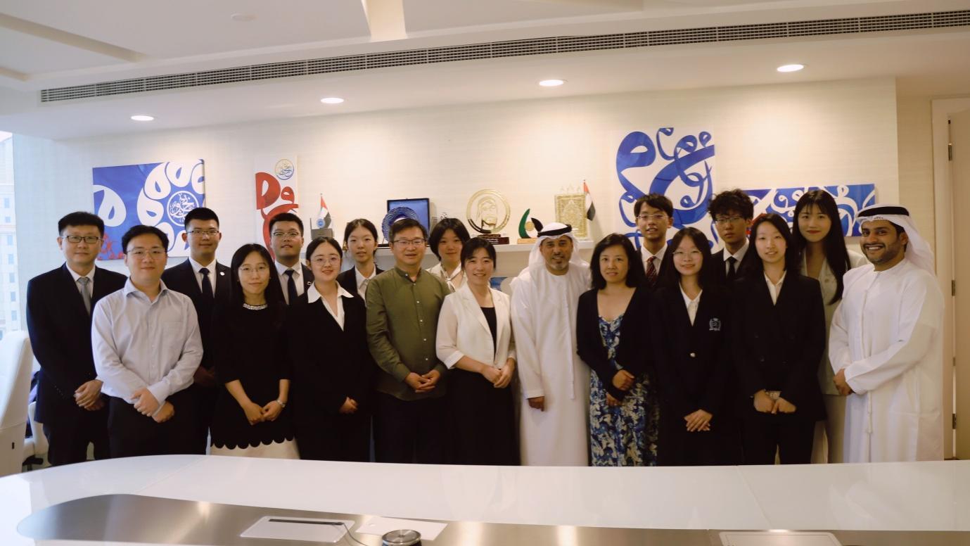 中国驻迪拜总领事馆欧渤芊总领事(前排左六)亲切会见访学团(前排左五为余越)