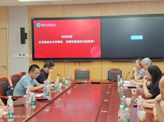 会议伊始,南京外国语学校副校长李鸿彬向省涟中领导、老师表达热烈的欢迎。随后,江苏省涟水中学副校长茹跃华介绍了本次交流的目的和计划。