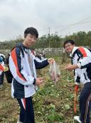 再后来我们登上大巴车去往田间,乡野的气味从未如此浓厚地将我们包围。黄绒般的草地与丛丛白鹅先后映入眼帘,最后在一片红薯地前我们停下脚步。按照老师的指示,我们分批领了铲子、塑料袋,踩着田间沟壑,生涩而惊奇地迈上这片厚重柔软的土地。起初总是很艰难的,我们习惯于钢笔、水笔、荧光笔的手握不来铲子,又没有庄稼人那样的敏锐细致,一铲下去,挖到红薯前总是先磕到石头,引起虎口一震。后来便是逐渐熟悉起来:先顺着层层藤蔓与叶子,条分缕析地寻找其源头,再顺着根部一点点下挖。小时候惯常于花鸟虫鱼打交道,现在连碰到蚯蚓都会惊诧。手中的袋子愈发鼓胀,童年的回忆与野地里肆意撒欢的劲头也逐渐在我们身上复苏。