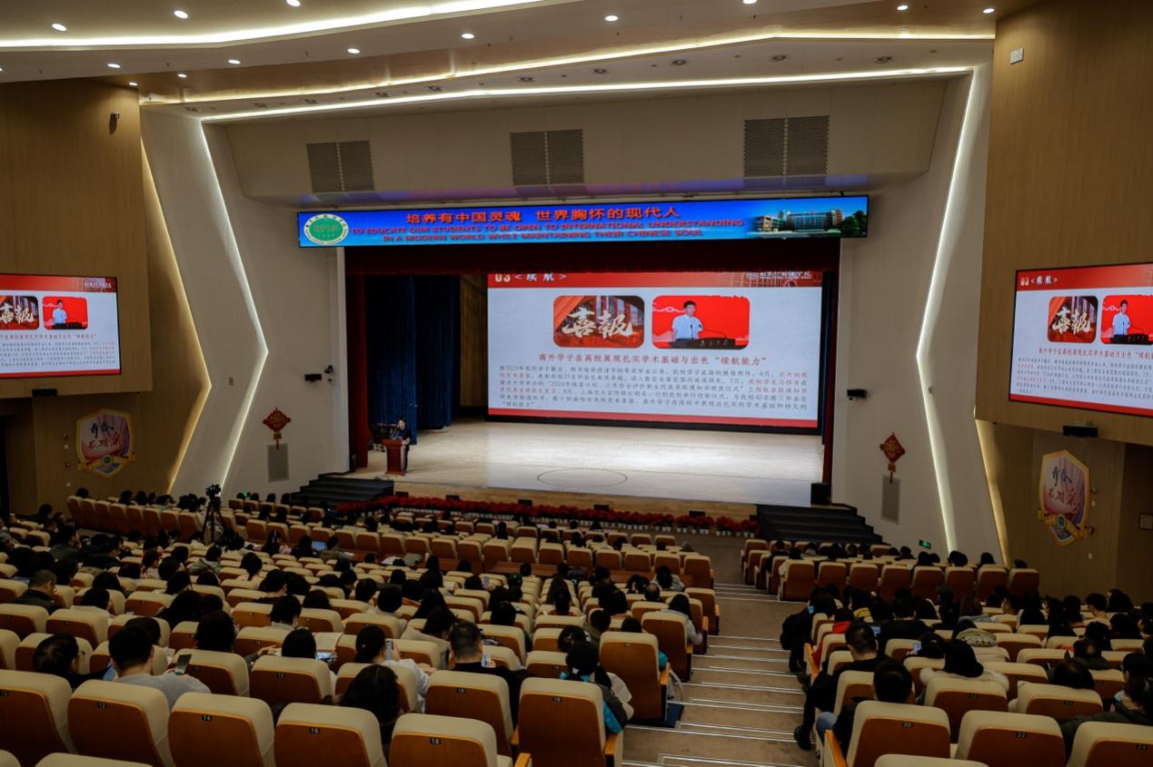 校党委书记刘前树进行学期工作总结。刘书记指出:2024年,是充满挑战与机遇的“创新发展年”。这一年,南外面向新时代教育改革的浪潮,以创新为驱动力,聚焦学校办学布局调整、育人方式改革、课程教学改革、校园生活品质提升、教育数字化,积极探索教育教学的新模式、新路径,为学校高质量发展注入了新活力。