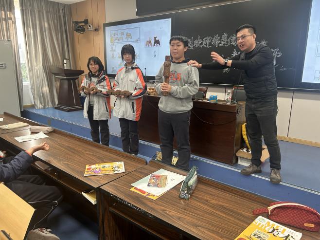 在讲座的最后环节,赵老师引导同学们化身“小小文物鉴定师”,通过亲手触摸、细致观察家具构件,学习辨别木料的材质与工艺的艺术价值。大家兴致盎然,在艺术的氛围与科技的启迪中,非遗文化与工匠精神在同学们心中悄然生根。