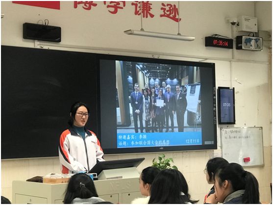图为李颖回国后受邀在不同班级分享大会见闻与心得体会
