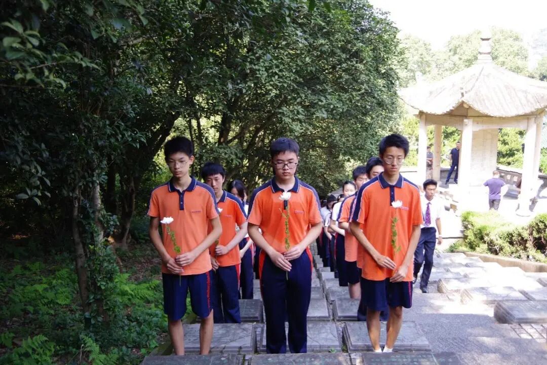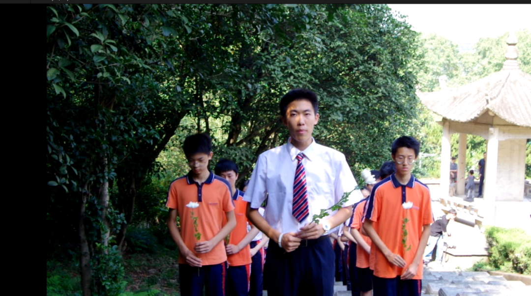 宣誓仪式完毕,全体国旗班成员手捧素白菊花,前往抗日航空烈士公墓祭奠。同学们面向公墓,肃立默哀。望着纪念碑上烈士姓名那遒劲有力的字迹,同学们仿佛回到了中华民族生死存亡的时刻,正是先烈们用血肉之躯谱写了一曲英雄的赞歌!