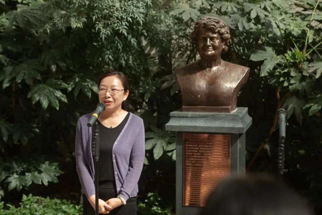 活动一开始,南京市人民政府外事办公室欧非处处长麻艳萍女士作为本次纪念仪式的嘉宾,带来了饱含深情的发言。作为雅克琳曾经的学生,麻处长在母校抒发着对老师的思念:“我是1986年从小学毕业的,雅克琳老师也在1986年来到南外教书,所以我是她的第一届学生……”麻处长娓娓道来,向我们还原了这位美丽优雅、胸怀大爱的教育专家。