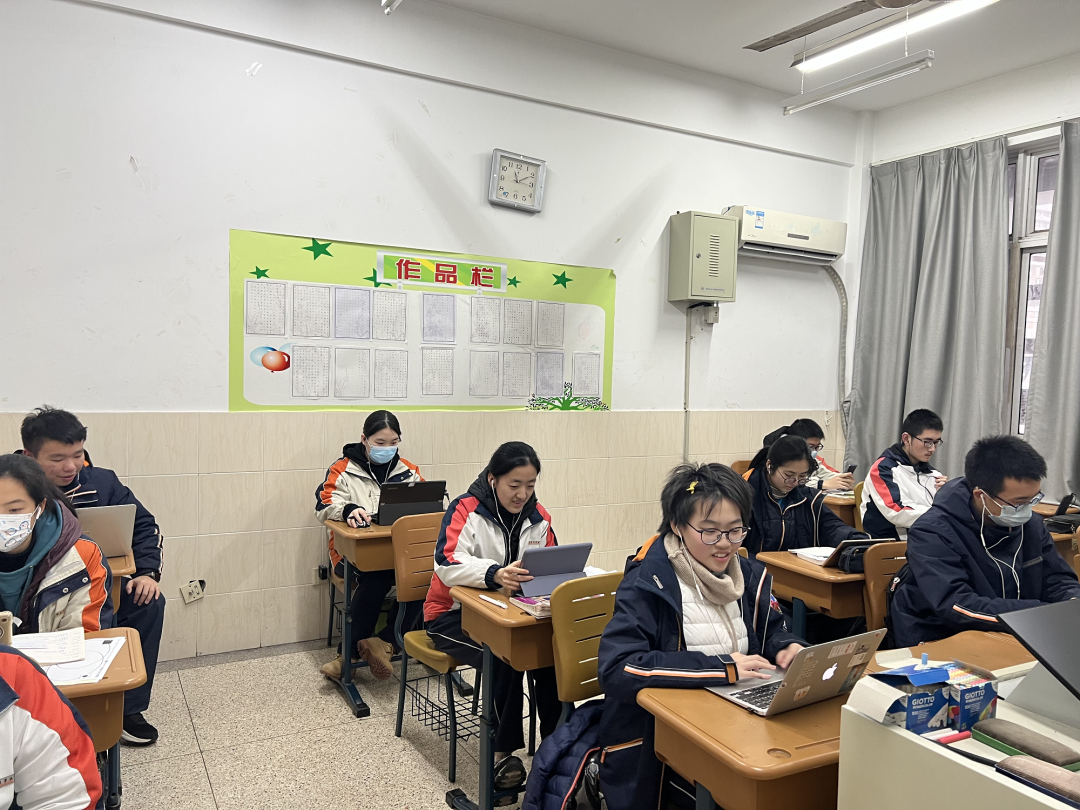 (南外同学在教室里进行线上交流)