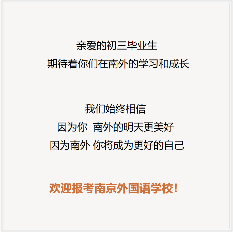 3. 《南京外国语学校2022年普通高中对外招生简章》的相关细则,已发布在南京外国语学校官方网站(m.russellgrahamnd.com),请考生及时关注。