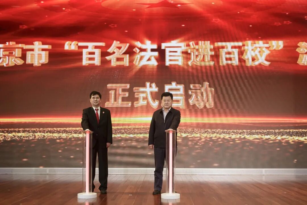 市法院党组书记、院长李后龙和市教育局局长孙百军共同启动“百名法官进百校”法治宣传教育活动。