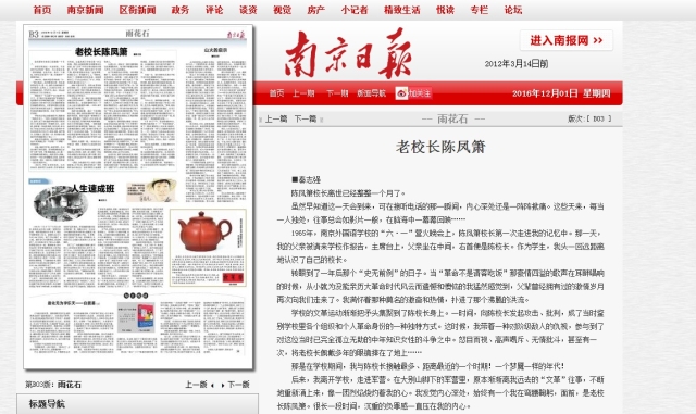 2003年腊月时节,南外40周年校庆后的第二天,我和几位老师同学前往位于中山陵的干部疗养院看望陈校长。此时,因为身体及生活原因,老校长已经长期居住在疗养院了。