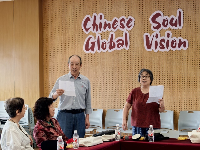 64级校友代表姜建、徐简文向老师们献歌 《老师,您好!》