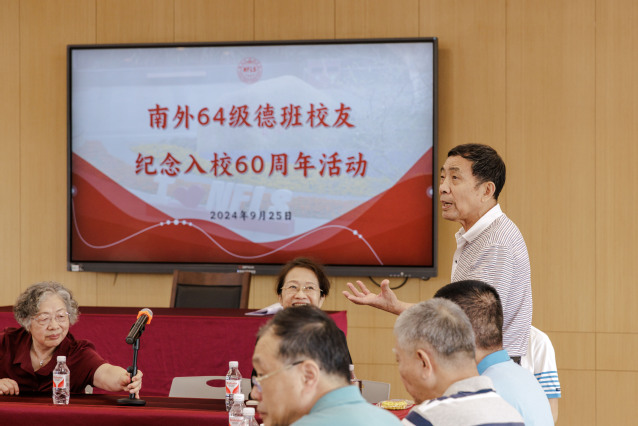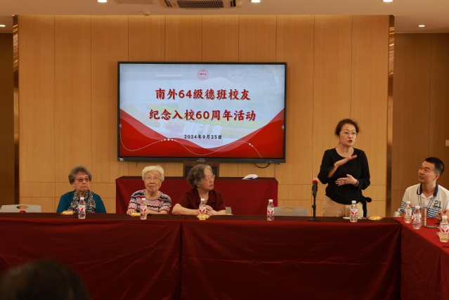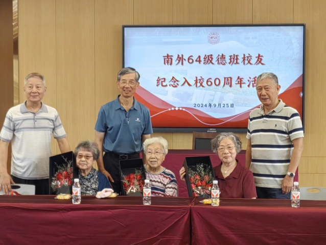 我们于1964年进入南外初中部德语班,在这里学习知识、陶冶身心、培育人格、成长进步,扣正了人生“第一粒钮扣”,迈出了人生重要一步。当年我们从南外走向四面八方,投身各行各业,今天我们如约而至相聚南外,就是想看望母校和老师,感恩母校和老师,致敬母校和老师。